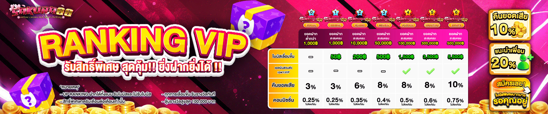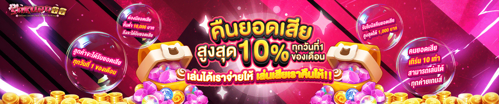 อีกจุดที่ต้องชื่นชมคือโปรโมชั่นที่คุ้มค่ากว่า ในขณะที่เว็บพนันทั่วไปมักให้โบนัสต้อนรับแค่ 50-100% Sakuras88 มอบโบนัสสูงถึง 200% พร้อมเงื่อนไขทำเทิร์นที่เป็นธรรมกว่า ไม่ต้องทำยอดหมุนเวียนสูงเกินไป ทำให้มีโอกาสถอนเงินได้จริง